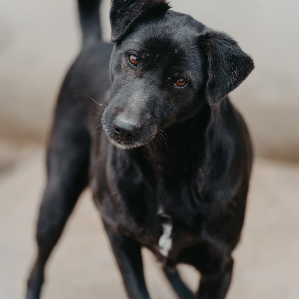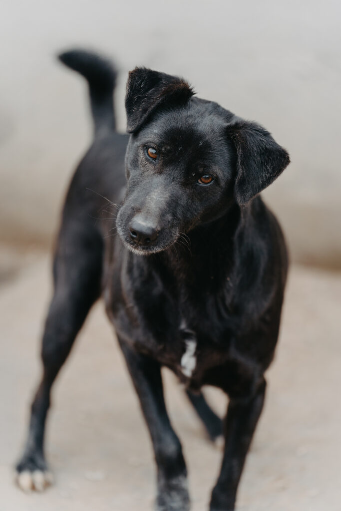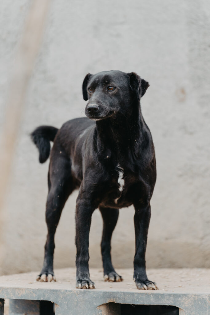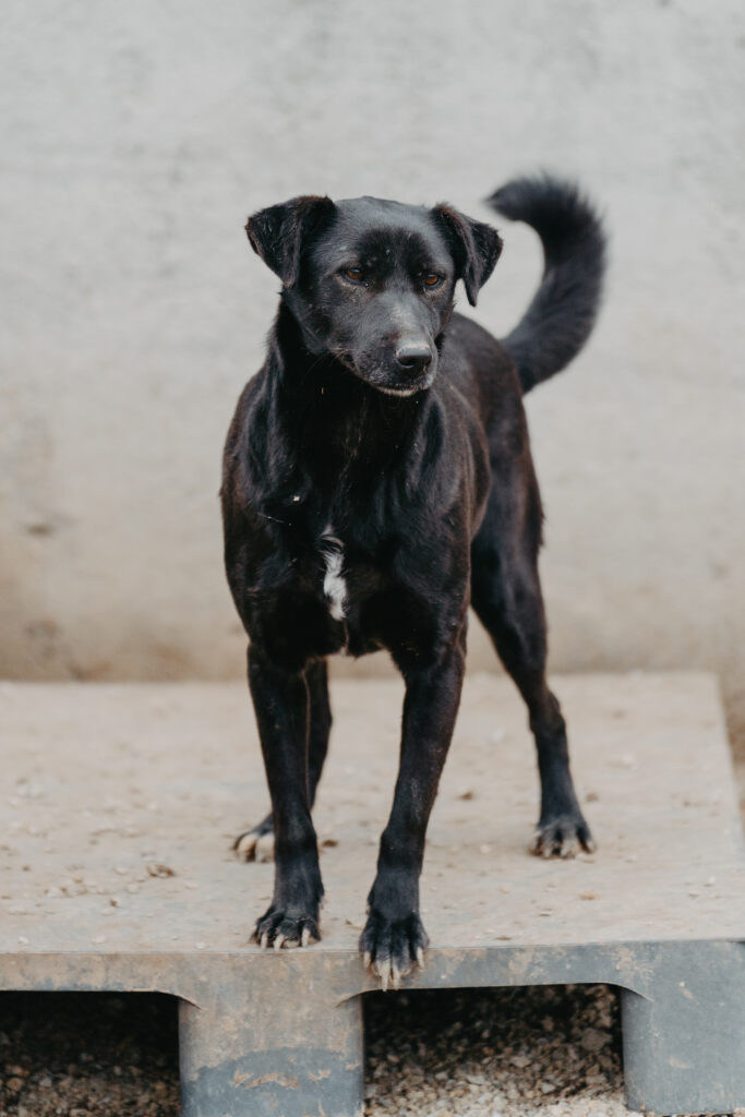 Gece ist ein kleiner, zarter Labrador-Mix, sehr verträglich mit anderen Hunden und ihrem Alter entsprechend verspielt und neugierig. Ihr zartes Wesen und ihre schüchterne Art machen sie zu einer ganz besonderen Hündin, die eine Familie verdient hat, die ihr mit Geduld, Liebe und Verständnis begegnet.