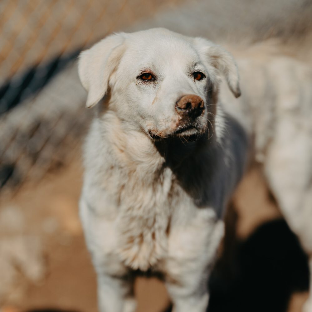 Leonie, geboren ca. im September 2022, ist ein Mischling, kein reinrassiger Golden Retriever. Sie hat Staupe überlebt und hat deshalb noch einen kleinen Tick um das linke Auge. Ansonsten ist sie gesund.