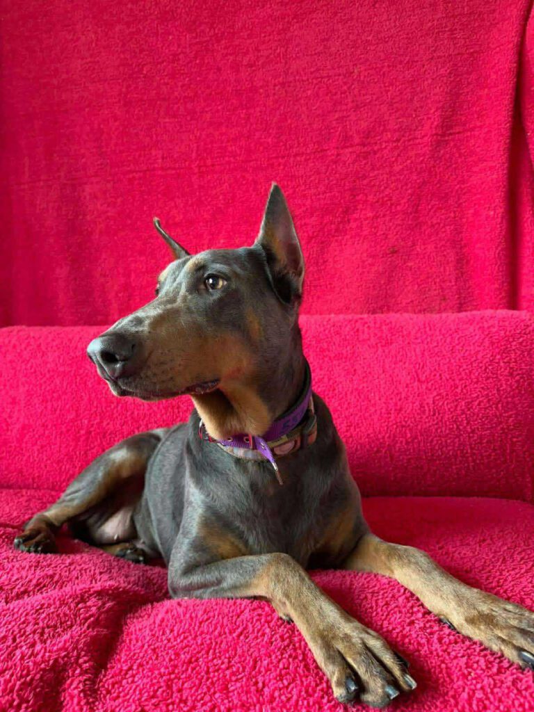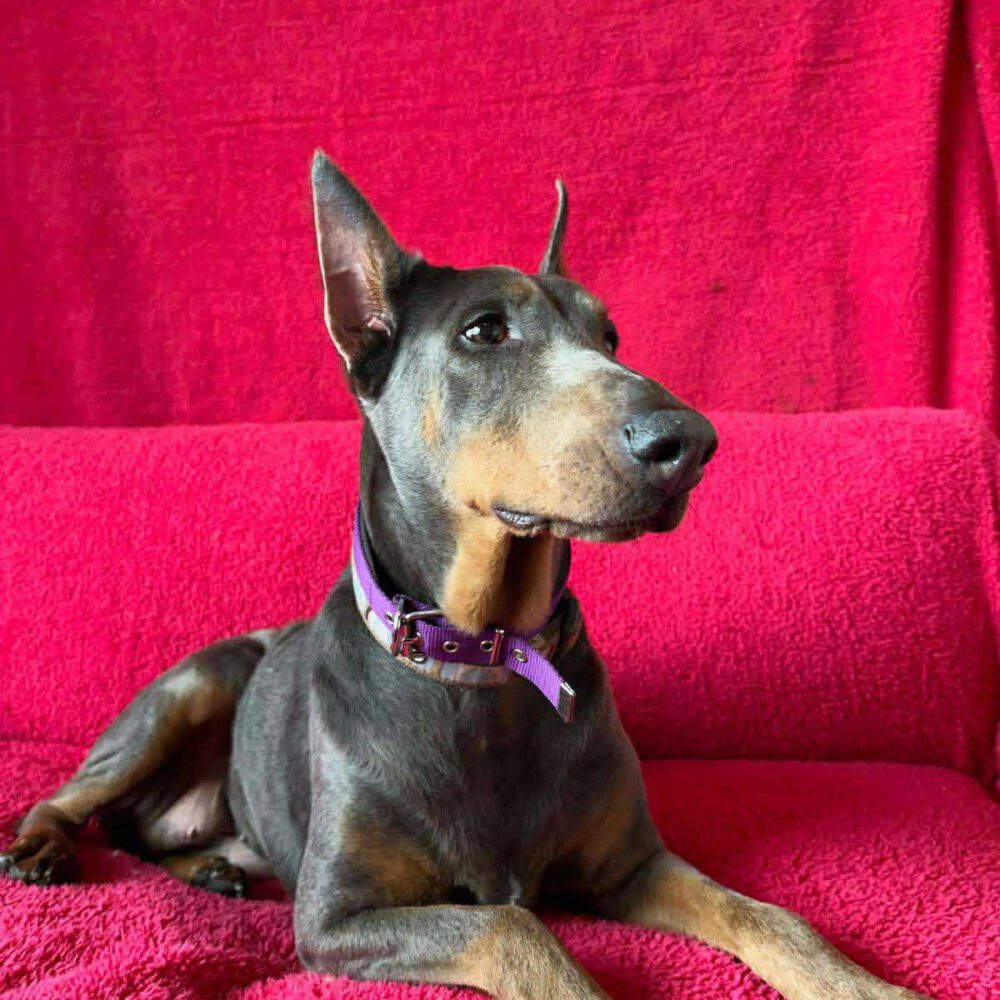 Tyla ist eine beeindruckende, charakterstarke ca. 3-jährige Dobermann-Hündin – sensibel, loyal und sehr eng an ihren Menschen gebunden. Sie bringt all das mit, was diese besondere Rasse ausmacht: Intelligenz, Wachsamkeit und eine tiefe Bindungsfähigkeit.