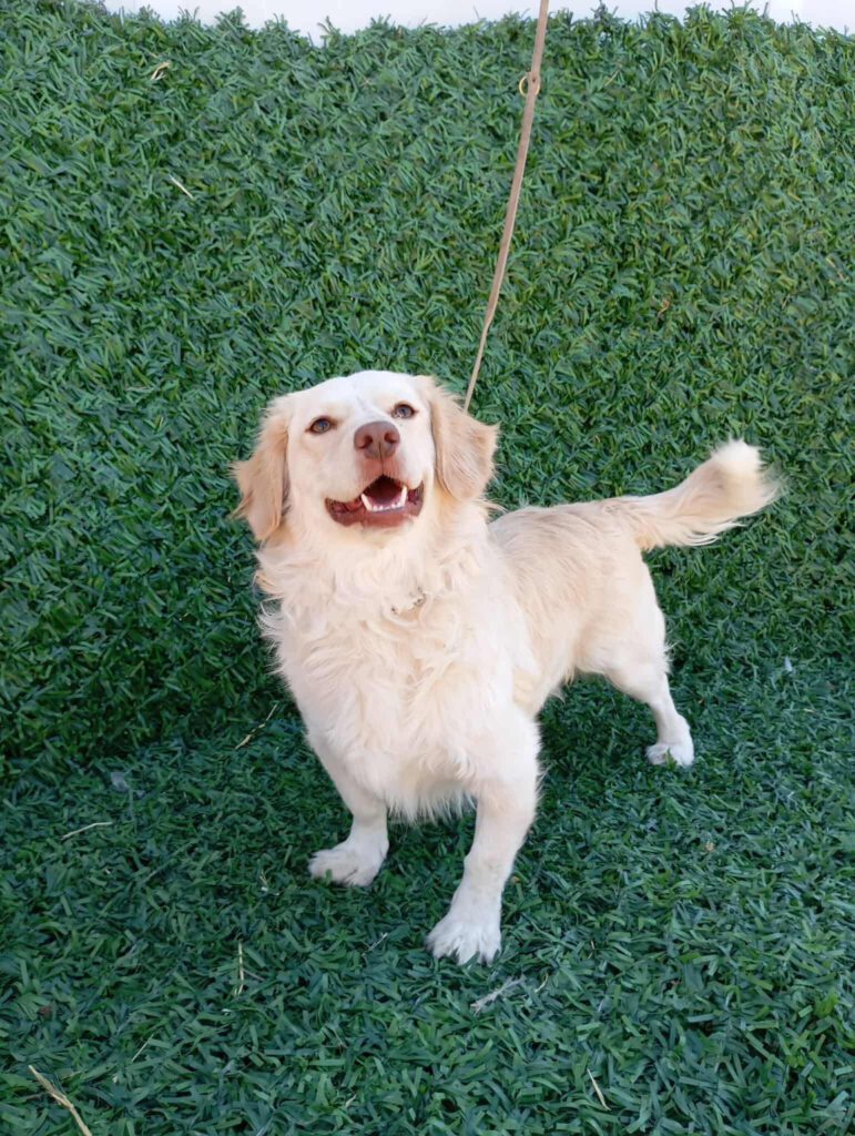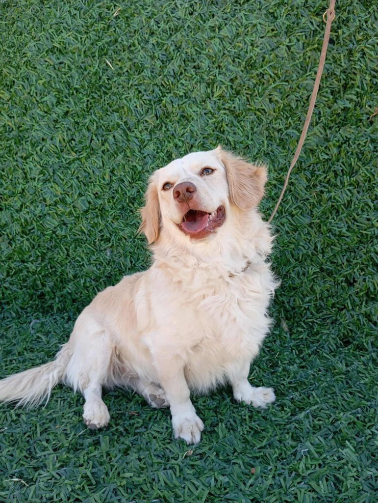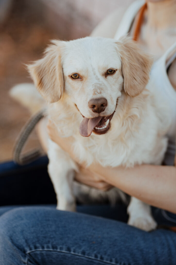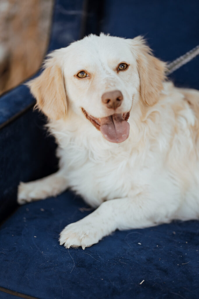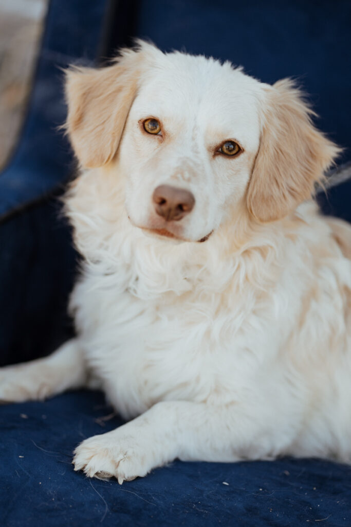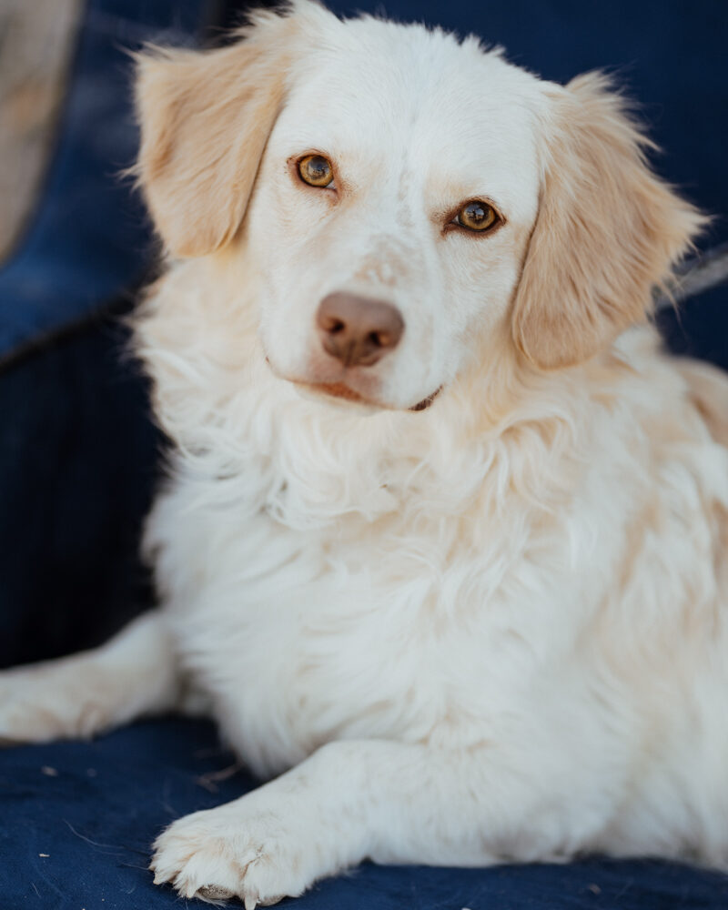 Ziyas Fell ist ein cremefarbener, welliger Traum und seine grünen Augen strahlen, wenn er neue Dinge erleben darf.